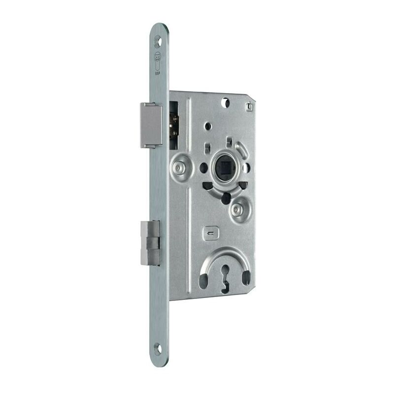 BB Ausführung · nach DIN 18251-1 Klasse 1 · allseitig geschlossener Schlosskasten · 1-tourig · abgerundet · Stulp alufinish silber · Stulplänge 235 mm · Dornmaß 55 · Entfernung 72 mm · Vierkant 8 mm · Falle und Riegel aus Kunststoff · ohne Schließblech