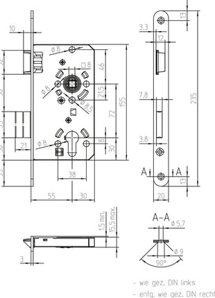 SSF Zimmertür-Einsteckschloss PZW 20/ 55/72/8 mm DIN links ( 3000251010 )