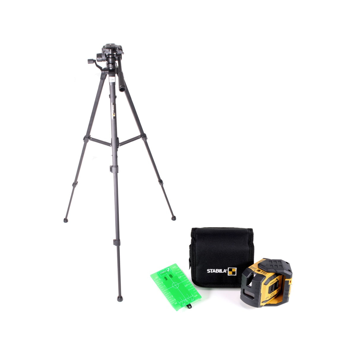 Als wichtiges Zubehör beim Arbeiten mit Messgeräten dient das Stativ der sicheren Positionierung von Laser-Entfernungsmessern und Linienlasern. Mit Hilfe der Kurbelsäule können Laser exakt auf eine gewünschte Arbeitshöhe positioniert werden. Das Stativ ist höhenverstellbar von 55-140 cm. Die eingebaute Libelle hilft bei der Feinjustierung des Laser. Die Beine mit Gummikappen sowie der Spreizschutz sorgen für einen festen und damit sicheren Stand auf der Baustelle. Das Stativ kann mit der im Lieferumfang enthaltene Schultertasche mit Trageriemen sicher verstaut und transportiert werden. Mit all den Eigenschaften ist das Stativ die Basis für präzises und sicheres Arbeiten mit Lasern. Für alle Profis, die auf präzise und optimal sichtbare Laserlinien setzen, ist der LAX 300 G der ideale Partner im Innenausbau. Die innovative STABILA GREENBEAM-Technologie steht für gestochen scharfe, extrem helle und lange Laserlinien, mit denen Sie noch effizienter und produktiver arbeiten können. Lot- und Nivellierarbeiten können gleichzeitig an Boden, Wand und Decke vorgenommen werden – das macht den Laser zu einem Allroundtalent mit zahlreichen Einsatzgebieten. Er ist selbstnivellierend und ermöglicht schnelles Arbeiten direkt auf den feinen Laserlinien dank der STABILA GREENBEAM-Technologie. Die Laserlinie ist optimal sichtbar bis 30 m. Zudem ist das Gerät vielseitig einsetzbar – 1 Horizontal-Linie, 1 Vertikal-Linie, Lotpunkte nach oben und unten. Die Vertikal-Linie deckt fast den ganzen Raum ab. Stromsparende Laserdioden der neusten Generation ermöglichen eine Betriebsdauer von bis zu 15 Stunden. Dank der baustellengerechten Pendel-Technologie findet eine schnelle Selbstnivellierung statt. Durch die Einknopfbedienung kann man schnell zwischen den Funktionen wechseln. Das kompakte Gehäuse mit ausziehbarem Fuß zur Höhenverstellung ermöglicht direktes Arbeiten an U-Profilen. Man hat mit diesem Kreuzlinienlaser variable Einsatzmöglichkeiten: auf dem Boden, auf einem Stativ (nicht enthalten) (1/4“-Gewinde), mit dem Seltenerd-Magneten an metallischen Gegenständen oder an der Wandhalterung (nicht enthalten). Mit stoßabsorbierendem STABILA Softgrip-Mantel. Der Laser kann im Gehäuse um 360° geschwenkt werden. In der Parkstellung ist die Optik des LAX 300 G vor Staub und Kratzern geschützt. Mit Gürteltasche.