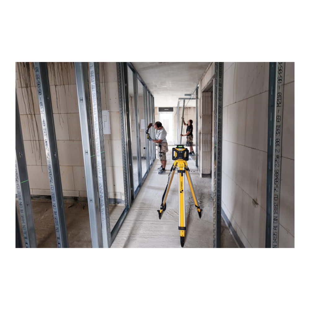 vollautomatischer, motorgesteuerter Rotationslaser – schnelle Selbstnivellierung innerhalb von 20 Sekunden · STABILA GREENBEAM-Technologie für bessere Sichtbarkeit des rotierenden Laserstrahls – grüne Laserstrahlen sind für das menschliche Auge um ein 4-faches sichtbarer als rote Strahlen · vier Laserfunktionen für einen vielseitigen Einsatz – horizontale und vertikale Rotation, Lotfunktion und rechter Winkel (90°) im Vertikalbetrieb · staub- und wasserdicht · stoßabsorbierender STABILA Softgrip-Mantel schützt vor Schlägen – die Laseroptik ist zusätzlich durch den stabilen Gehäusekopf geschützt · einfache Bedienung über drei Bedienknöpfe – Ein/Aus, Tiltmodus, Manueller Modus · Batterie-Schublade – leichter Wechsel auch direkt auf dem Stativ · großer Arbeitsbereich mit Set-Receiver REC 160 RG – bis zu 600 m Durchmesser · zwei im Gehäuse integrierte 5/8“-Gewinde · Zielplatte mit Magnethalterung und Fadenkreuz · Einsatzgebiete: Layout-Arbeiten, Setzen von Trennwänden und Abhängen von Decken, Elektroinstallationsarbeiten – Steckdosen, Schalter und Kabelkanäle horizontal und vertikal zueinander ausrichten, Installationsarbeiten im Industriebau – Einmessen der Ebenen und Ermitteln von Fluchten für den Verlauf von Leitungen und Rohren, Industriemontage – Einmessen und Ausrichten von Regalsystemen in Logistikbereichen · Stativaufnahme 2 x 5/8″