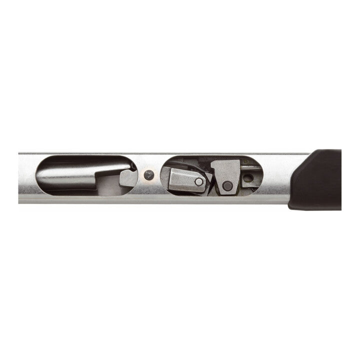 mit fest eingebauter Knarre · für den kontrollierten Rechts- und Linksanzug · auslösend · Schnelleinstellung durch Klemmhebel im Griff · Verstellelement · Doppel-Stopp-Signal · Doppelskala Nm/ft·lb · Genauigkeit ± 4 % Toleranz von eingestelltem Wert · Besonderheit: kein Rücksetzen auf "0" erforderlich, da das Messelement nur beim Anziehvorgang belastet wird · Weiterbelastung nach dem Auslösen oder Belastungen entgegen der Funktionsrichtung, z.B. bei festsitzenden Schrauben, wirken nicht auf den Auslösemechanismus, der dadurch vor Beschädigung geschützt wird