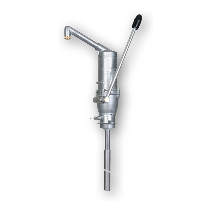 aus Metall (Zinkdruckguss) · für Motorenöle, Getriebeöle und Hydrauliköle bis SAE 80 · Teleskop-Saugrohr, Saugrohrlänge 490-925 mm · Förderleistung: 0,25 l/Hub · Fassverschraubung 50,80 mm (2″) · Nachtropfsicherer Auslauf · Vorrichtung für Vorhängeschloss · Unterstellhöhe 390 mm · einfachwirkend