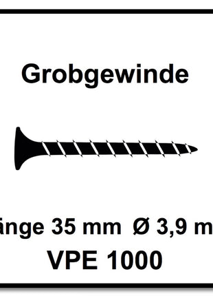 Technofast HBGF3935TE 1000 x Schnellbauschrauben Magazinschrauben 3,9 x 35 PH2 Grobgewinde