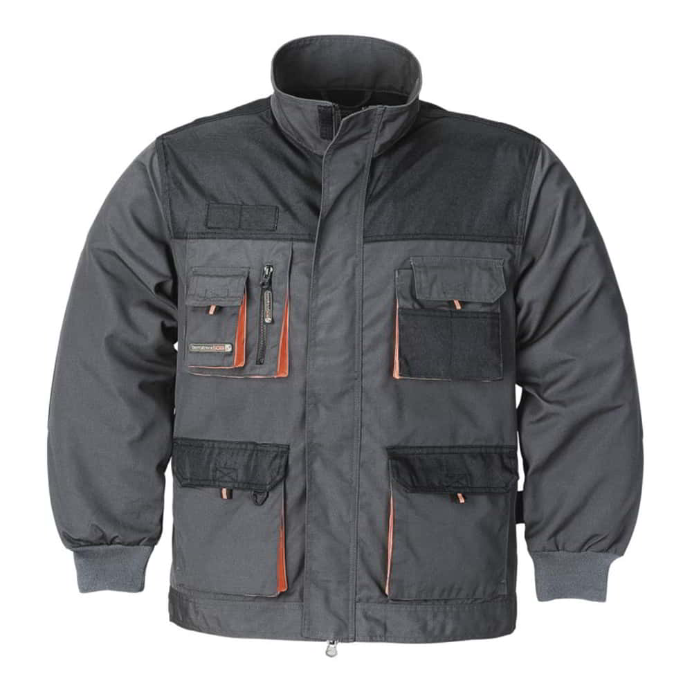 65% Polyester / 35% Baumwolle · ca. 270 g/m² · mit modisch abgesetzten Kontrastfarben · sehr festes und langlebiges Obermaterial · scheuerfeste und sehr haltbare Schulter- und Ellenbogeneinsätze verleihen eine Langlebigkeit an diesen Belastungspunkten · der Bundabschluss und die elastischen Bündchen sorgen für ein angenehmes Tragegefühl · die Windleiste über dem Reißverschluss schützt ideal bei Wind und Wetter · 5 geräumige Taschen, verschließbar mit Klett- und Reißverschluss auf Anfrage lieferbare Größen: 46