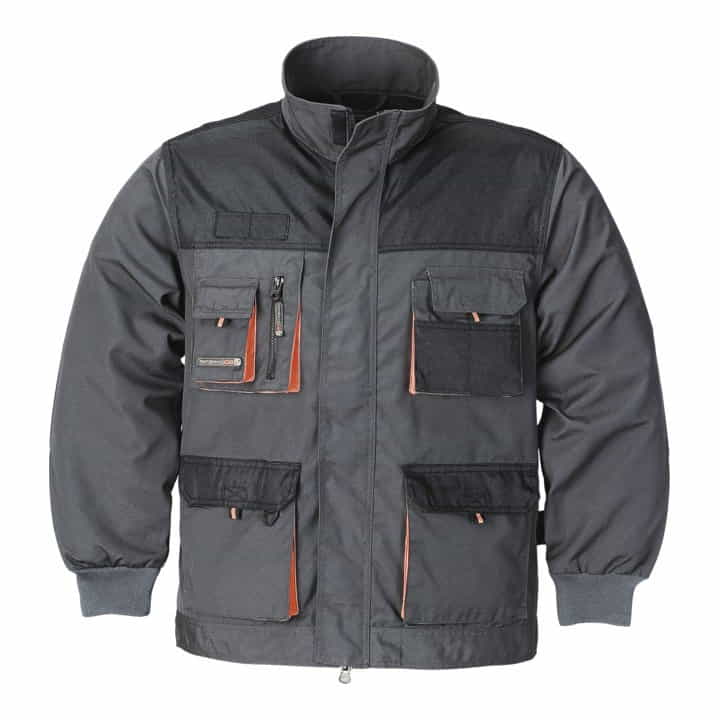 65% Polyester / 35% Baumwolle · ca. 270 g/m² · mit modisch abgesetzten Kontrastfarben · sehr festes und langlebiges Obermaterial · scheuerfeste und sehr haltbare Schulter- und Ellenbogeneinsätze verleihen eine Langlebigkeit an diesen Belastungspunkten · der Bundabschluss und die elastischen Bündchen sorgen für ein angenehmes Tragegefühl · die Windleiste über dem Reißverschluss schützt ideal bei Wind und Wetter · 5 geräumige Taschen, verschließbar mit Klett- und Reißverschluss auf Anfrage lieferbare Größen: 46
