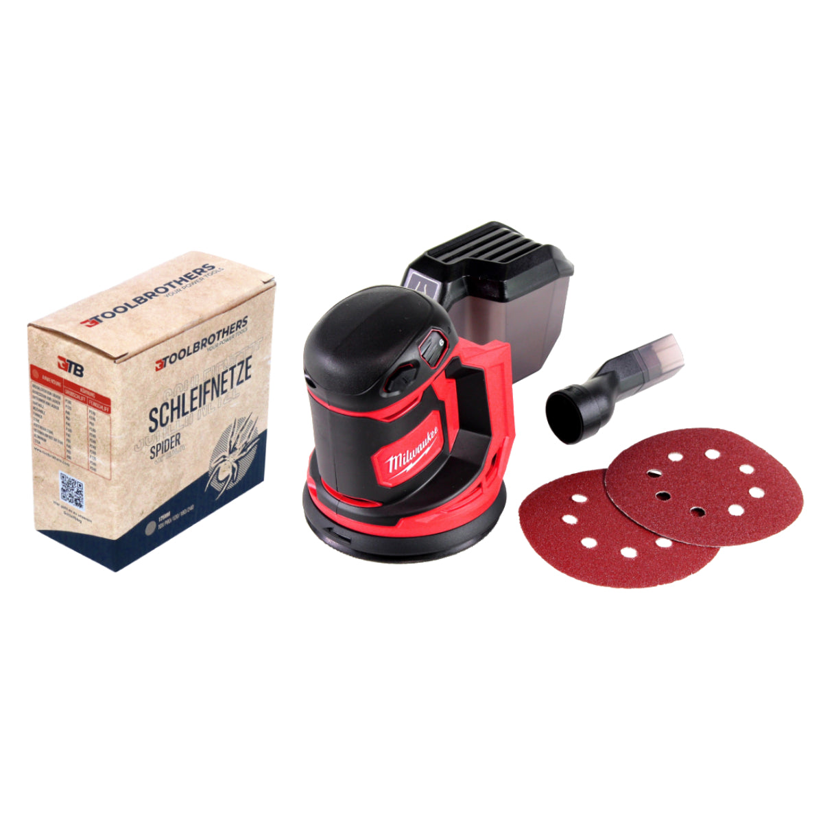 Toolbrothers SPIDER Schleifnetz-Set 125mm + Milwaukee M18 BOS125-0 Akku Exzenterschleifer 18V 125mm Solo - ohne Akku, ohne Ladegerät