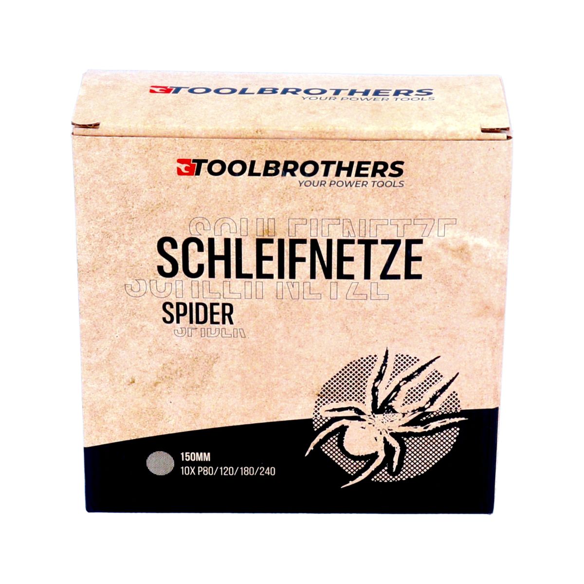 Toolbrothers SPIDER Schleifset Netz 150 mm Klett je 10x P80 / P120 / P180 / 240 für Hartholz, Weichholz, Lack, Stein, Stahl, Aluminium, Furnier