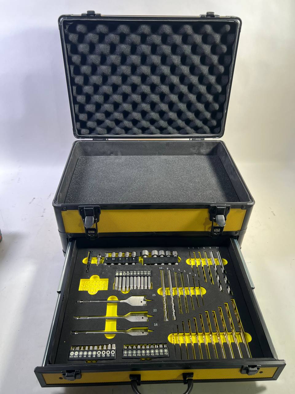 Toolbrothers TX Alu Werkzeug Koffer gelb für Akku Schlagschrauber und Schlagbohrschrauber + 70 tlg. Bit Bohrer Set + Würfelschaum Einlage - Neuwertig