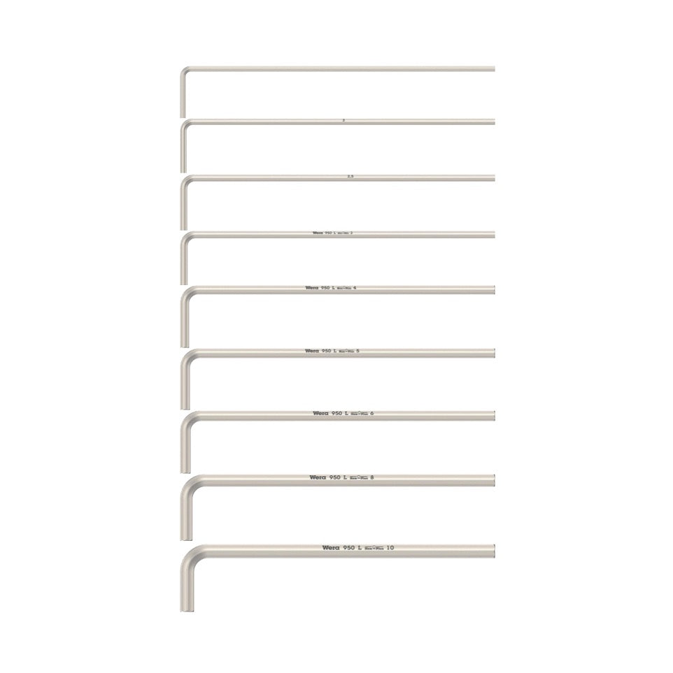 - 9x 950 L Ni Winkelschlüssel, metrisch, chemisch vernickelt ( 1,5 x 90 / 2 x 100 / 2,5 x 112 / 3 x 126 / 4 x 140 / 5 x 160 / 6 x 180 / 8 x 200 / 10 x 219 mm )