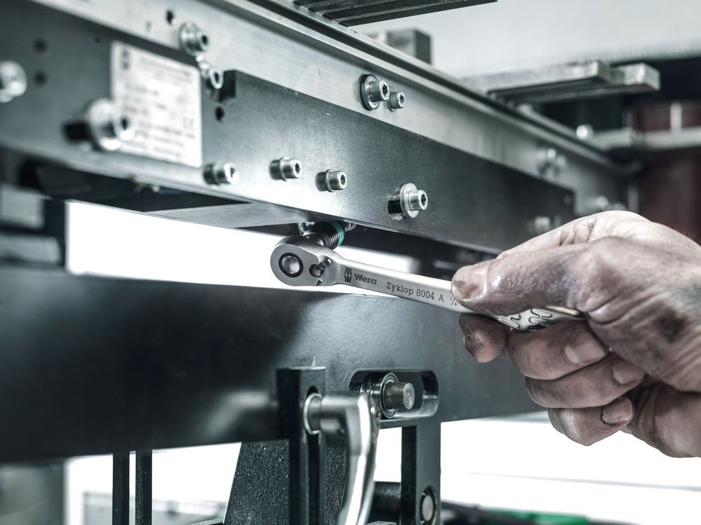 6,3 mm (1/4 ″)-Vierkantantrieb · robuste, feinverzahnte, geschmiedete Vollmetallknarre · aus legiertem Werkzeugstahl · Nussverriegelungsfunktion mit Druckknopfauslösung · schlanke Bauform · langer Hebel · (optimal auch für sehr beengte Arbeitsräume geeignet) · Rückschwenkwinkel 5° 72 Zähne