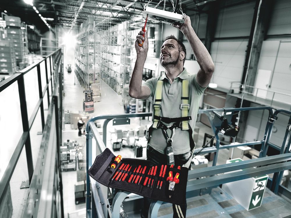 mit Wechselklingen (154 mm lang) und 2 Handhalter mit Mehrkomponenten-Kraftform-Griff · mit Abroll- und Abgleitschutz · VDE-isoliert bis 1000 V · gefertigt gem. IEC 60900, stückgeprüft · Wechselklingen aus legiertem Werkzeugstahl komplett mit VDE isolierter KNIPEX® Montagezange (ersetzt 6 Einzelwerkzeuge - Schneiden, Abisolieren, Greifen, Biegen, Entgraten, Crimpen) · Inhalt: 2 isolierte Kraftform-Handgriffe (102 mm) je 1 isolierte Wechselklinge für Schlitzschrauben 2,5 / 3,5* / 4,0 * / 5,5* mm je 1 isolierte Wechselklinge für Schrauben mit Kreuzschlitz (PH) Gr. 1* / 2* je 1 isolierte Wechselklinge für Schrauben mit Kreuzschlitz (PZD) Gr. 1* / 2* je 1 isolierte Wechselklinge für Plus-Minus-Schrauben (Schlitz/PZD) Gr- 1* / 2* je 1 isolierte Wechselklinge für Schrauben mit Innen-TORX®-Profil T 10 / 15* / 20* / 25* 1 KNIPEX® Elektro-Installationszange * = mit reduziertem Klingendurchmesser - auch für tiefsitzende Schrauben