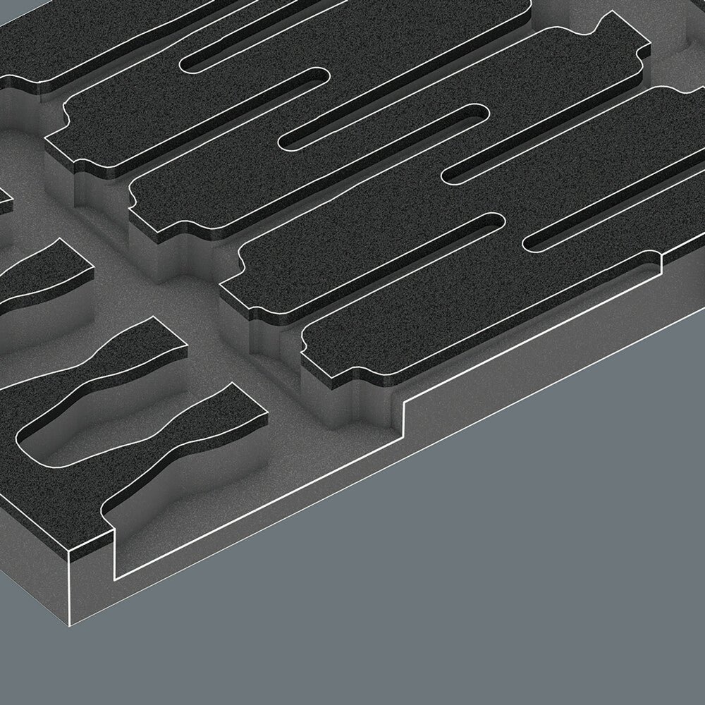 mit Schaumstoffeinlage und VDE Schraubendreher Set 1, 16-teilig · 2-farbig · wasser- und ölabweisend B x H x T (ohne Werkzeug) 344 x 30 x 392 mm B x H x T (ohne Werkzeug) 344 x 46 x 392 mm